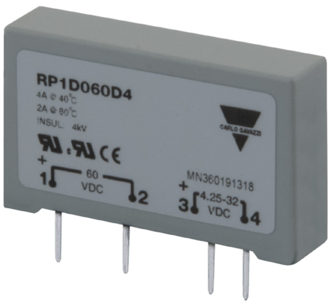 The Carlo Gavazzi RP1D Solid State Relay is used in PCB mounted applications where there is a need for fast switching of small DC loads with a high input/output insulation of more than 4000 VACrms.