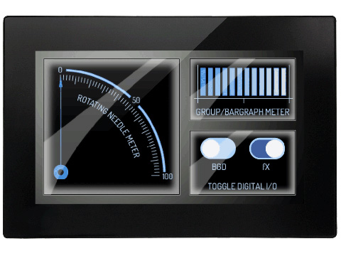 By using the free Windows® based Interface Panel Design Studio software, users can personalize the display with buttons, switches, and analog and digital scales to suit their needs. An optional development board is also available, which includes a development board with buttons, dials, LEDs, and screw terminals to test the functionality of all inputs and outputs.