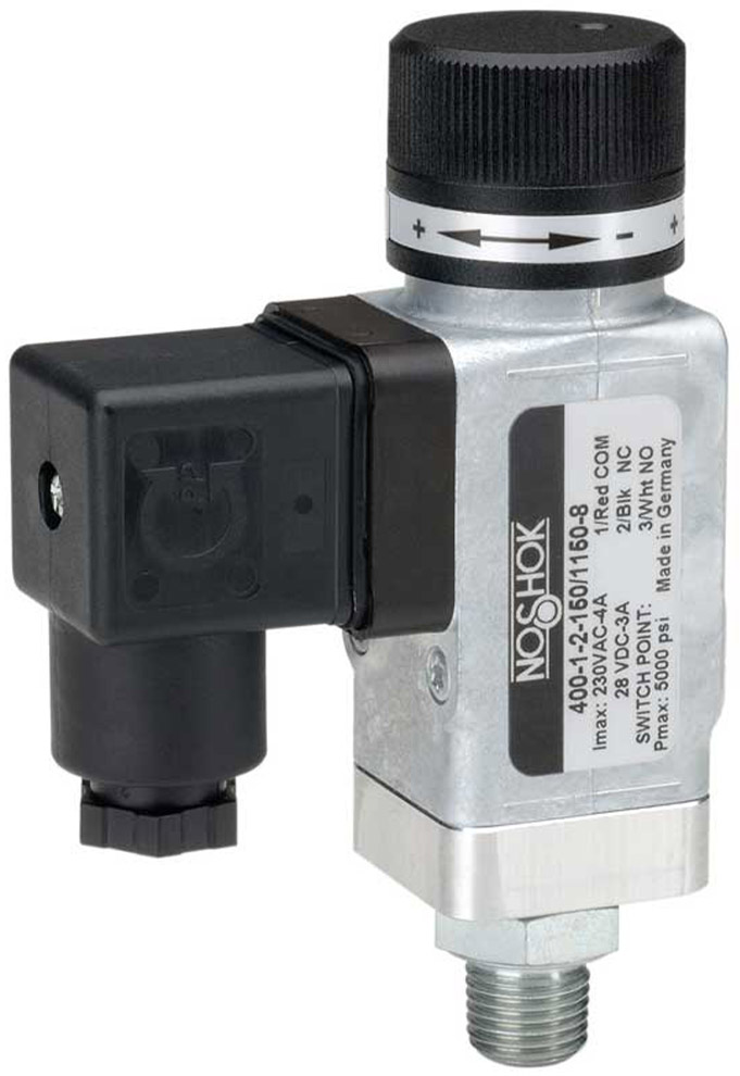 The Kobold KPH compact pressure switch comes standard with a 1/4 inch female NPT process connection and a DIN 43650A electrical connection. The switch has a fixed deadband, though the setpoint is easily adjustable, and a max switching rate of 100 per minute.