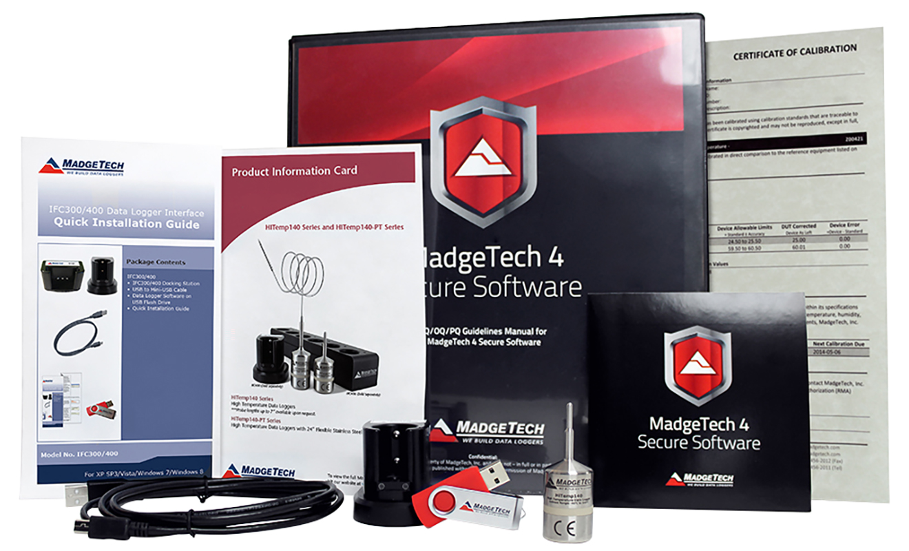 The MadgeTech AVS140-1 Temperature Data Logging System is a complete system used to perform autoclave validations. The AVS140-1 consists of a NIST traceable high temperature data logger, an IFC400 Interface and the MadgeTech 4 Secure Software providing tools to users to assist with FDA 21 CFR Part 11 compliance.
