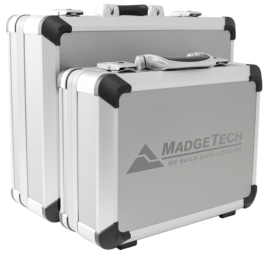 The MadgeTech MT-AluCase briefcase is a high quality, multi-purpose briefcase, designed for the protection, transport and storage of data loggers, equipment and accessories. These durable aluminum cases include pick and pluck foam inserts, allowing the user to customize a snug fit and secure any combination of products. The briefcase frame is strong yet surprisingly light weight with a comfortable ergonomically upholstered handle. The MT-AluCase is available in two sizes, a compact 14 inch width and large 18 inch width option, both featuring an egg crate foam lined lid and keyed locks.