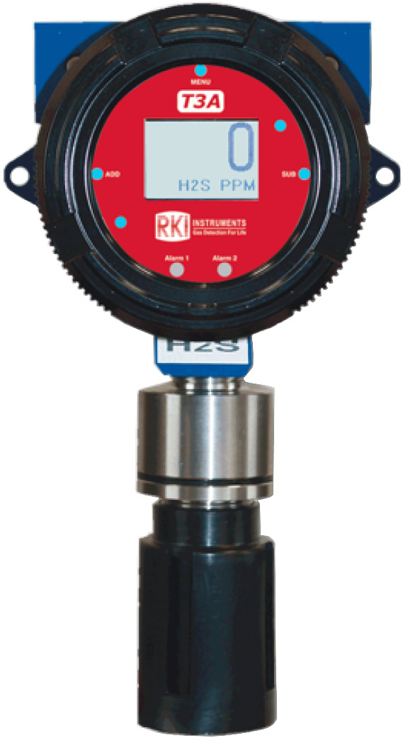 The RKI Instruments T3A gas transmitter is a versatile assembly that uses an electrochemical, infrared, catalytic bead senso Magnetic switches allow for non-intrusive calibration while in the field as well as full system settings and diagnostics.