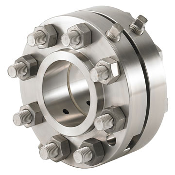 The Rosemount 1496 Orifice Flange Union holds orifice plates in place for reliable flow measurement. This flange union is designed with a threaded tap connection (180-degrees apart) and engineered to withstand high temperatures and pressures of up to ANSI Class 2500#. These flange unions do not require on-site drilling and come with a complete assembly of all necessary hardware, including studs, nuts, jack screws, gaskets and pipe plugs.