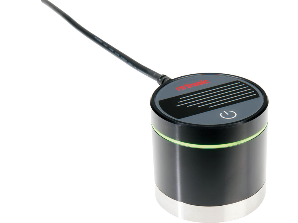 The AwTherm meter is based on the same technology as the Rotronic HygroGen2 temperature and humidity calibration suite of instruments which manipulate forced air to create highly stable thermal conditions with minimal gradients within the measurement environment. The meter uses a Rotronic HygroClip2 series probe to control and measure conditions. The AwTherm has a measuring head that can be removed entirely for calibration of both Aw and temperature parameters against references traceable to National Standards.