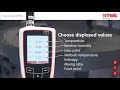 The Rotronic HygroPalm HP32 handheld humidity meter is the latest development in handheld measuring instruments for relative humidity, temperature and psychrometric calculations. Psychrometric calculations include dew/frost point (Dp/Fp), wet bulb temperature (Tw), enthalpy (H), vapor concentration (Dv), specific humidity (Q), mixing ratio by weight (R), vapor pressure (E), saturation vapor pressure (Ew) and saturation vapor density (SVD). The graphical display allows for graphs and up to four values.