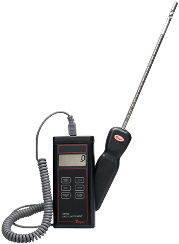 The easy-to-use Testo 416 mini-vane anemometer is an air velocity and temperature meter that has an attached 16 mm (0.63 in) vane probe on a telescoping shaft. You can just enter the duct area measurements directly into the Testo 416 mini-vane anemometer, and volume flow measurements (cfm) are shown on the clear display.